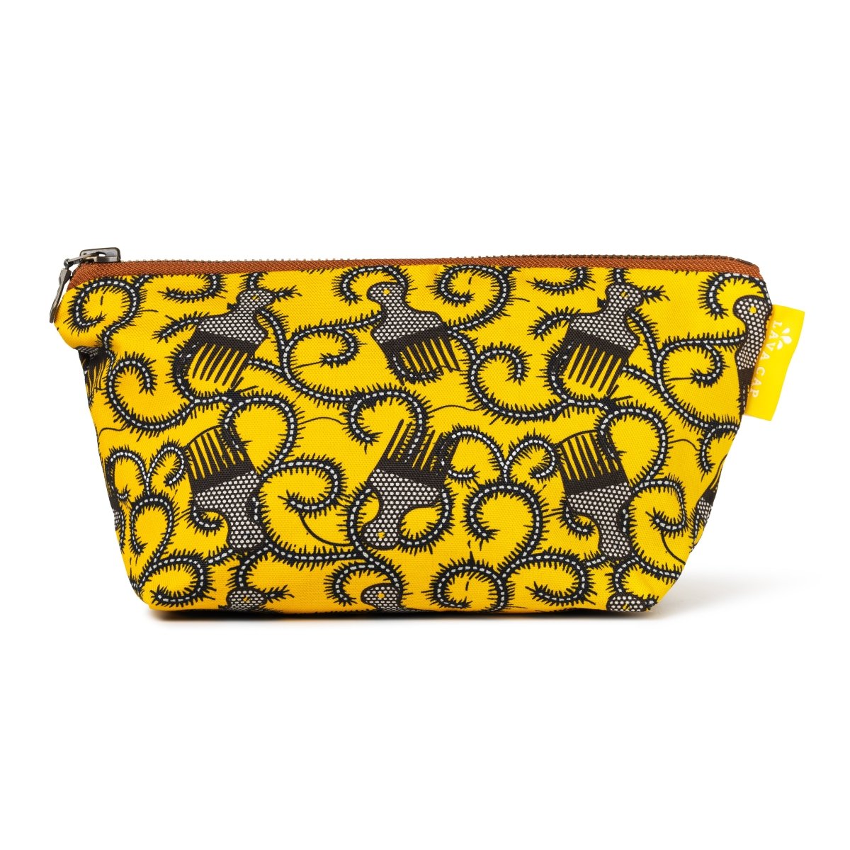This "Perfectly Picked" Ankara comb print toiletry bag has a sturdy and secure zip closure to keep your important washday accessories or toiletries safe in one place